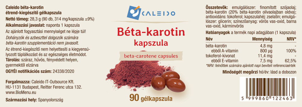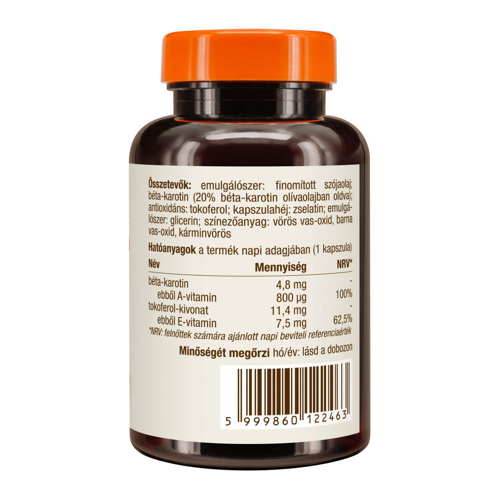 beta-carotene 4.8 mg, of which vitamin A 800 µg (NRV 100%); tocopherol extract 11.4 mg, of which vitamin E 7.5 mg (NRV 62.5%)